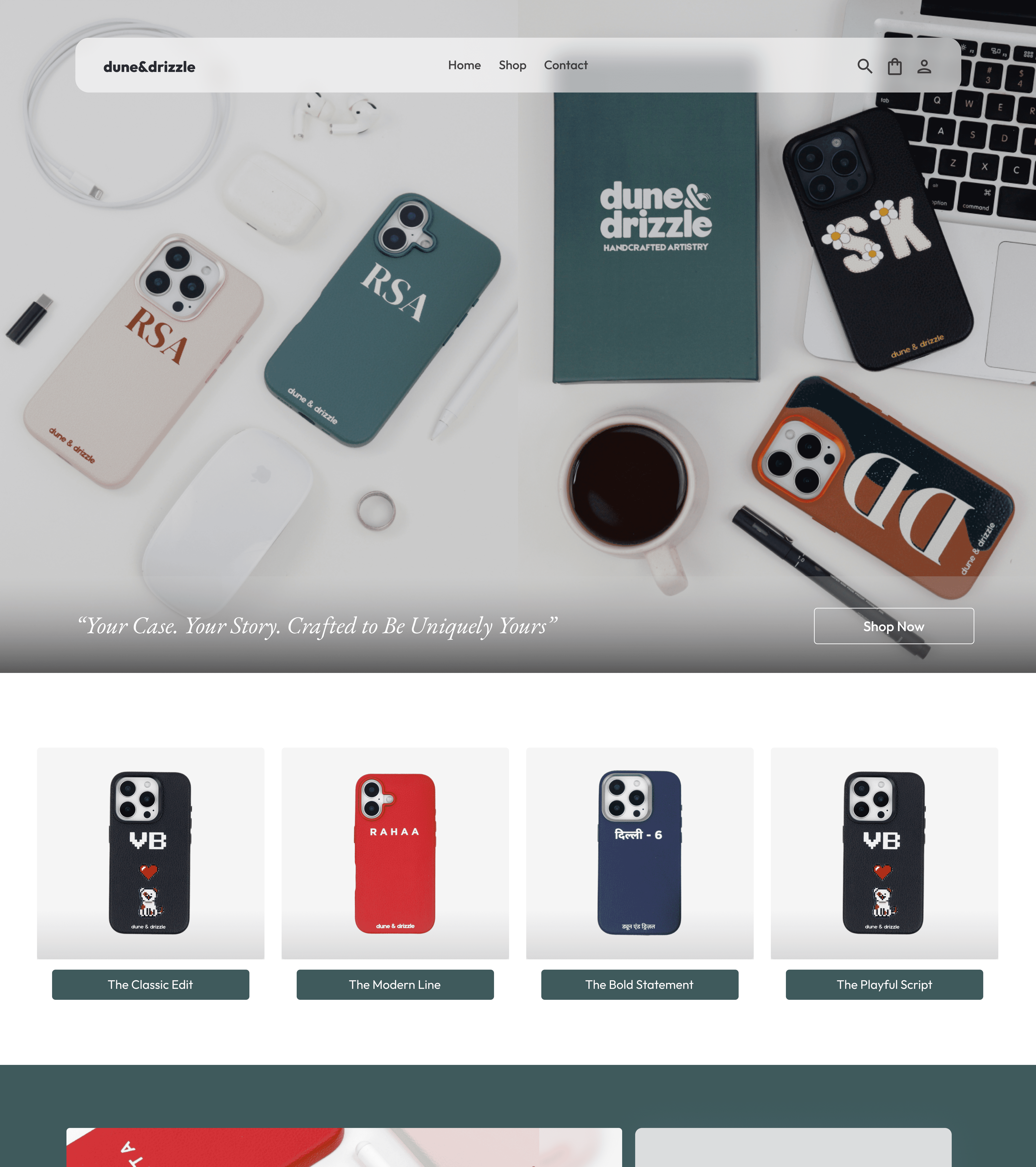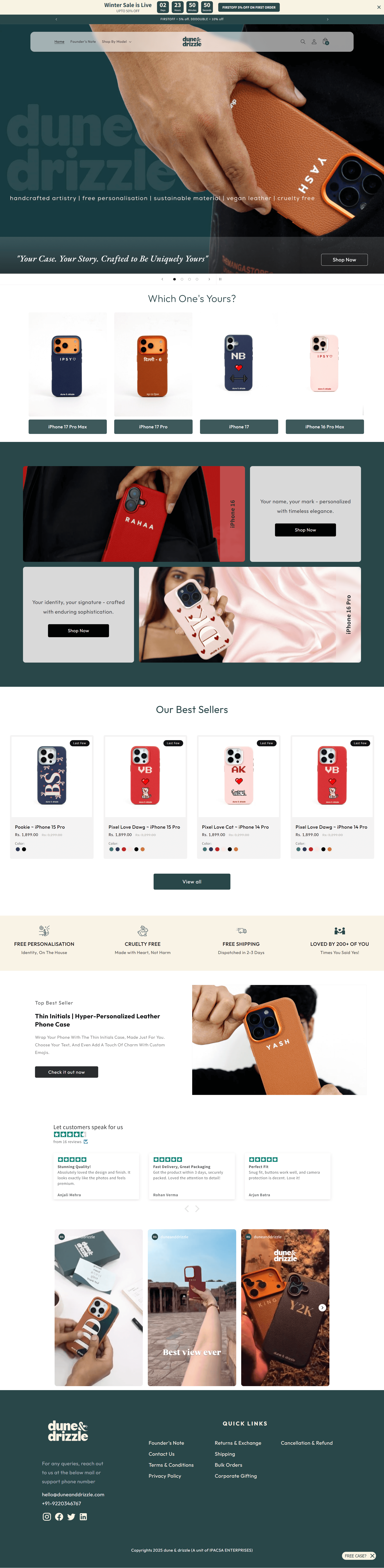 Dune & Drizzle wanted to stand out in the crowded D2C space with a truly interactive product experience. We designed the complete UI/UX and developed a custom Shopify theme from scratch, building a powerful real-time product customization engine using Liquid and JavaScript—without relying on third-party apps.